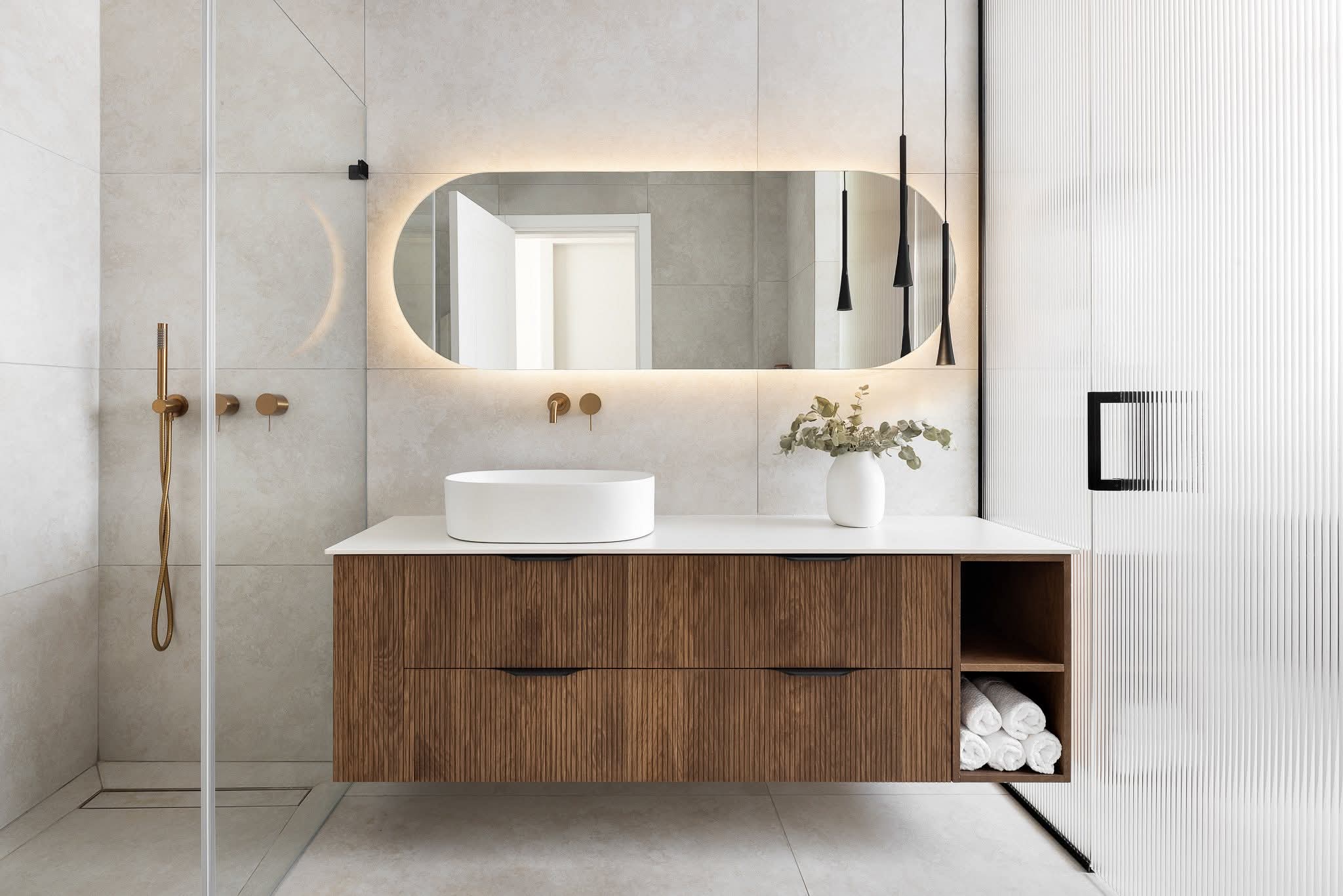 Small space, high impact. Statement tile, designer fixtures, and custom lighting — transformed in under two weeks with one of the highest ROIs in your home.